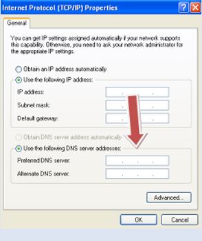 - Pada bagian " Use the following DNS server addresses ", ubah angka - angka yang ada di dalam kolom menjadi :